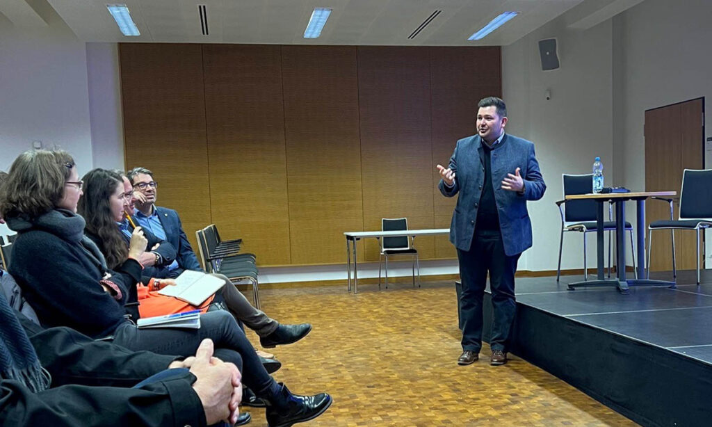 Im Anschluss hat im dort untergebrachten Stadtarchiv Herr Dr. Jörg Vogelmann von der Porsche AG über den Stand der Bemühungen unserer Automobilindustrie auf dem Weg zur Klimaneutralität berichtet. Dabei haben insbesondere der technische Fortschritt, die anhaltende Investitionsbereitschaft und ein klares Bekenntnis zum Standort Baden-Württemberg begeistert.