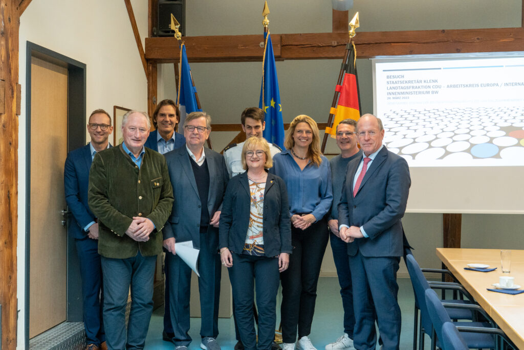 Der Arbeitskreis Europa und Internationales hat sich in dieser Woche gemeinsam mit Wilfried Klenk, Staatssekretär im Ministerium des Inneren, für Digitalisierung und Kommunen, über die grenzüberschreitende Zusammenarbeit von Polizei und Feuerwehr im Rahmen eines Vor-Ort-Termins in Kehl informiert. Auf dem Programm standen Besuche des gemeinsamen Zentrums der Polizei- und Zollzusammenarbeit, der deutsch-französischen Wasserschutzpolizeistation und des Feuerwehrlöschboots Europa 1 der Feuerwehr der Stadt Kehl.